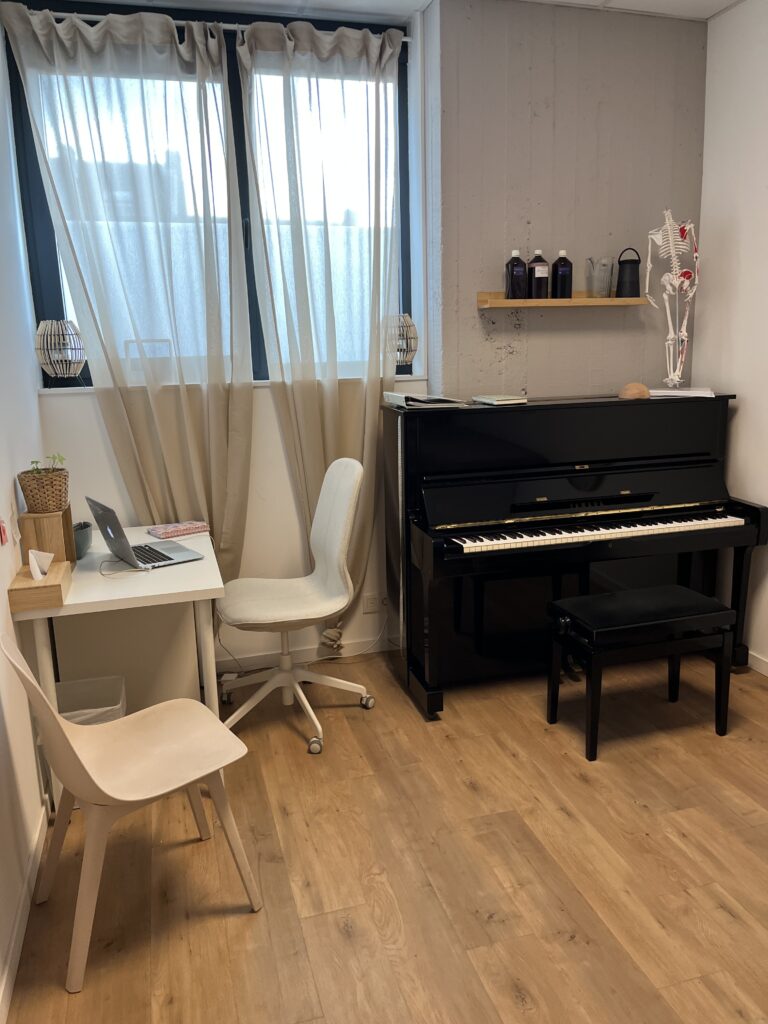 Les séances de coaching postural durent 1h et se font toujours avec votre instrument. Nous avons un piano sur place. Pour les instruments difficilement déplaçables, veuillez me contacter – je peux me rendre à domicile ou consulter en visioconférence.